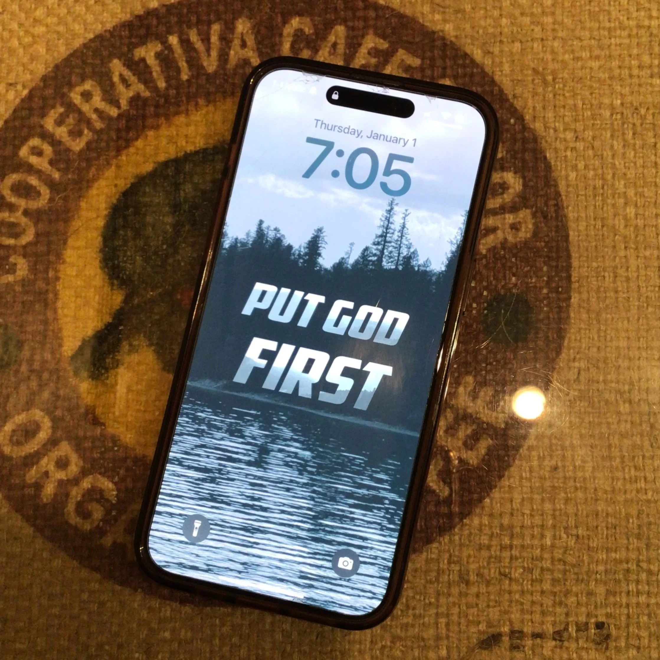 We made a Hi-res wallpaper that you can put on your Lock Screen to remind you to put God first every time you pick up your phone! (Save it to your phone’s photos, and then choose it as your wallpaper.)